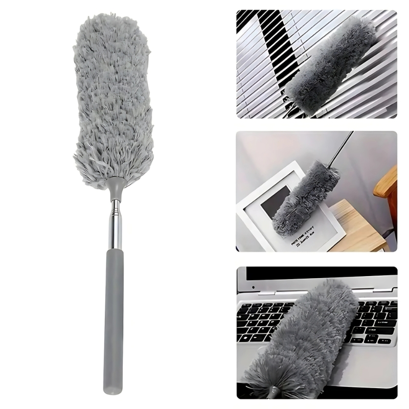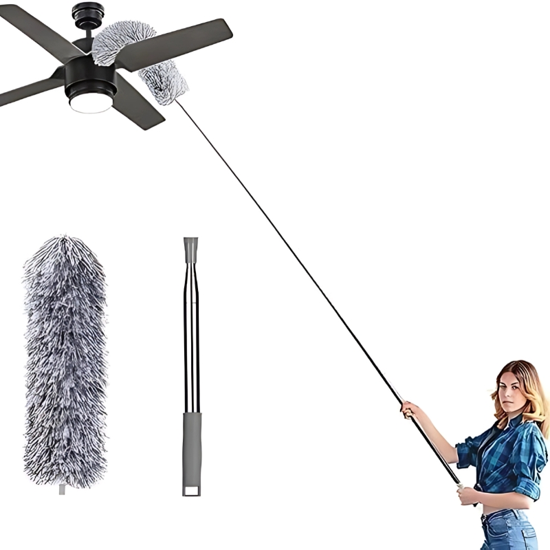 Upgrade your cleaning routine with this Bendable & Extendable Microfiber Feather Duster, designed for high-reach dusting and efficient cleaning. The flexible, bendable head easily adjusts to clean ceiling fans, blinds, furniture, shelves, and tight corners, while the telescopic handle extends to reach high ceilings and hard-to-reach areas without a ladder.